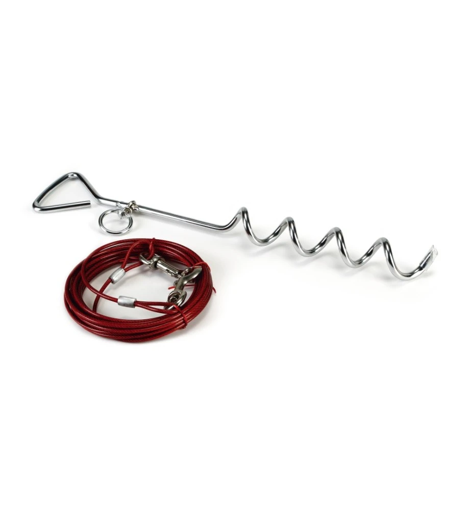Met de Vastleg Set met Lijn geef je jouw dier de ruimte om te bewegen zonder dat hij of zij kan ontsnappen. Ideaal wanneer je bijvoorbeeld jouw kat in de tuin wilt laten lopen of jouw hond meeneemt naar het strand of de camping. Deze spiraal is gemaakt van metaal en eenvoudig in de grond te draaien door toevoeging van de schroefdraad en scherpe pin aan de onderzijde. Aan de spiraal is een ring bevestigd waar je de meegeleverde lijn van 6 meter aan kan bevestigen.