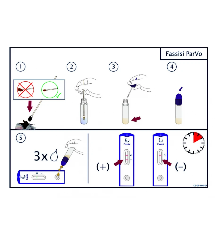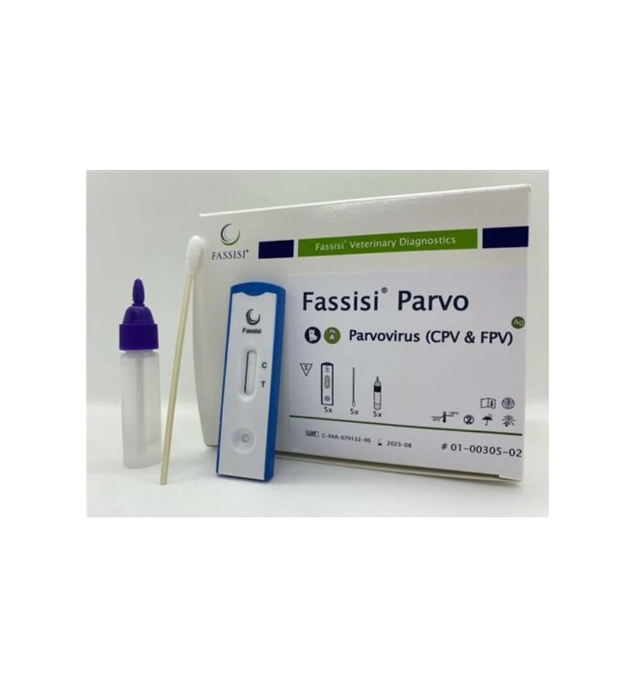 De Fassisi ParVo zelftest kan gebruikt worden als antigeendetectie van parvovirussen (CPV/FPV) in uitwerpselen van honden en en katten voor een snel en betrouwbaar resultaat.